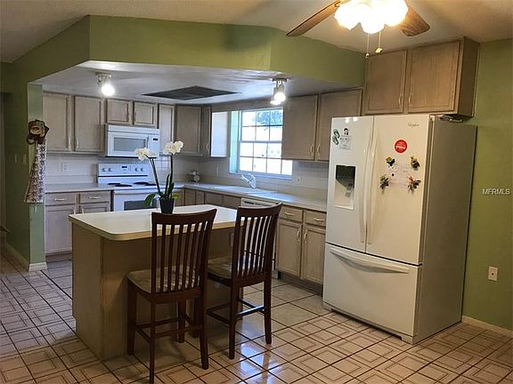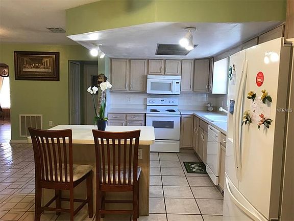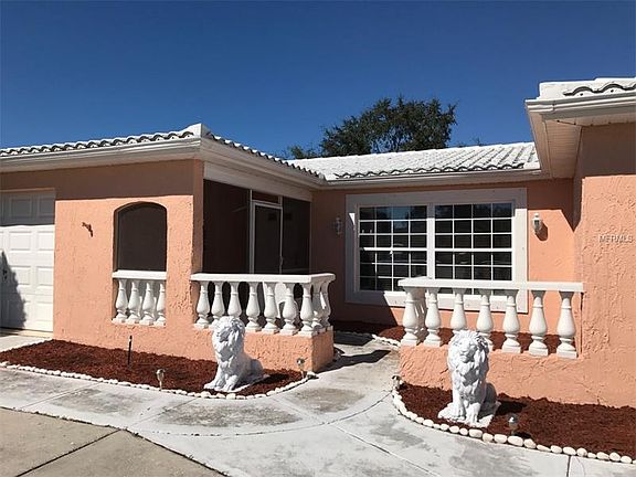 NON FLOOD ZONE! This home is located in the desirable Orchid Lake Village neighborhood which is located on a Cul-De-Sac street. It is looking for a new family to call it home who can also offer a little bit of TLC. The home features newer exterior paint, 3 bedrooms, 2 baths with a 1 car garage and an in ground pool that has had the interior of pool recently resealed which is surrounded by a screened enclosure. Completely tiled through out, this open floor plan also boasts arched doorways, an eat in kitchen AND a dining room. Master Bedroom offers an en-suite with a double vanity with a separate entrance for guests through the main hallway. Second bedroom offers plenty of space while the third bedroom can be used as an office or guest space. Plenty of parking on this circular driveway perfect for entertainment. The potentials are endless - CALL TODAY before someone else calls this place home!