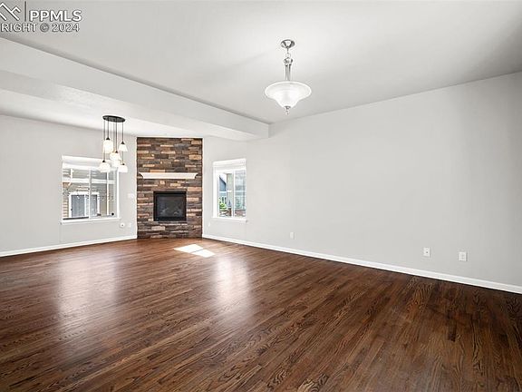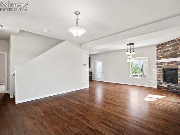 Welcome to this unique 5-bedroom, 3.5-bathroom home with a bonus room, perfectly situated in the sought-after Banning Lewis Ranch community. Just steps away from Climber's Park and close to top-rated schools, shopping, dining, and other amenities, enjoy the community's numerous parks, trails, and recreational facilities. Featuring breathtaking views of Pike's Peak, this home offers an exceptional blend of comfort, style, and convenience. Abundant natural light flows through the well maintained, one owner home, enhancing its warm and inviting atmosphere. The main level features real hardwood floors, a convenient main floor bedroom, and a half bath with an extra storage closet. The dining room, complete with a cozy gas fireplace, seamlessly connects to the kitchen creating a wonderful mealtime experience. The well appointed kitchen includes a breakfast bar, an upgraded single basin undermounted sink, corner pantry, and a gas range/oven. Walk out to the Xeriscaped backyard through the kitchen for easy grilling and outdoor living. The upper level primary suite offers magnificent Pike's Peak views, dual closets, spa-like walk in shower, linen storage, and dual vanities creating a serene and relaxing sanctuary. The top floor is rounded out with two additional bedrooms, a versatile bonus room that can be used as an office, playroom, exercise room, crafting area or whatever your heart desires. Another bathroom, laundry room, and a generous landing at the top of the stairs adds to the spacious feel of this level. The finished basement provides a retreat with a spacious bedroom, a full bathroom, a family room, and an under-the-stairs storage area currently used as a children's reading nook. This home is a true gem, offering a blend of elegance and practicality in a prime location. Don’t miss the chance to make it yours and discover the lifestyle that awaits you in Banning Lewis Ranch. (Home has been pre-inspected.)