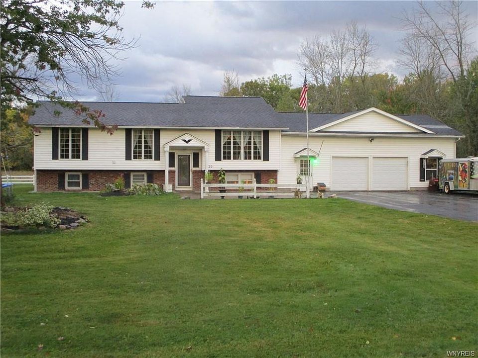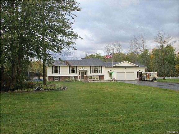 Sitting pretty on a beautiful 3+ acre lot this spacious 4/5 bedroom home provides you with all the room you need both inside and out! Upper level features the living rm which opens to formal dining area & kitchen w/tons of cupboards & counterspace, Enclosed heated Fla rm features new flring, gas fplc & cath. ceiling. Perfect rm to enjoy the natural view. Huge mstr suite w/full bath & wall of closets. The main bath was recently updated. Rounding out the upper level is a 2nd bed/office. The lower level features a huge family room w/decorative fplc. and 2/3 more bedrooms. Great hallway between the garage and house features a row of closets. 3 car attached garage w/new epoxy floor, loft and pellet stove. Nice size barn with kennel area. Electronic pet fence. Nice size deck on rear of house, plus a patio area in the front and back. Relax in the hot tub enjoy watching the nature on your private lot w/pond. Relocating owners are looking for a quick sale & have priced home to sell! Showings begin Friday 10/2 at 9am, offers will not be considered until after Tuesday 10/6, 5pm. Sq footage is based on the property being a raised ranch both floors fully finished & the heated enclosed Fla. rm.