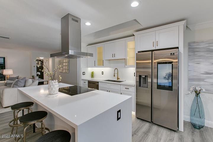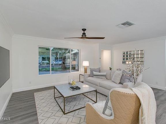This is a MAGNIFICENT home located in MUCH desired heart of Scottsdale! ELEGANCE & COMFORT are COMBINED in this AMAZING RESIDENCE! Situated within minutes from everything this home features 2 car garage, 3bdrms, 2 bath. Beautiful front entrance leads in to the living room. LARGE designer Chef's kitchen features HIGH END waterfall quartz countertops, oversize island & stainless appliances. MASTER MASTER bedroom has its own private bathroom, fogless shower mirror, double sinks & closet. Large laundry & office area. Glass sliders lead to a backyard with a grassy area and custom pergola perfect for relaxation and gatherings. Storage shed. Everything in this home has been UPGRADED : dual pane windows, electric, plumbing, tankless water heater, kitchen, bathrooms, flooring, fans, bronzed