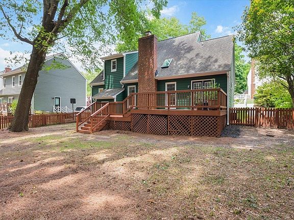 The heart of Raleigh shines emerald green with this beautiful 1.5 story transitional. Recently refreshed with updated flooring, windows and siding, this stunning home is graced by a large deck overlooking the fenced rear yard. A spacious primary bedroom suite adorns the first floor with an open two story living room complete with fireplace and french doors. Two spacious bedrooms are found upstairs, complete with a full bath. If you're searching for convenience and accessibility, Emerald Chase simply can't be beat. Sola Coffee is just a short morning walk away and Lead Mine provides convenient access to Crabtree Valley Mall, Creedmoor Road and 540. Come see this beautiful North Raleigh gem, before it ends up in someone else's treasure chest!