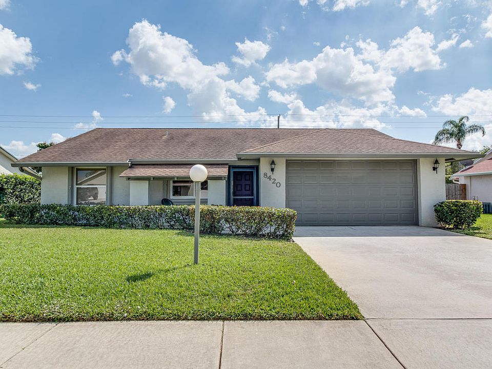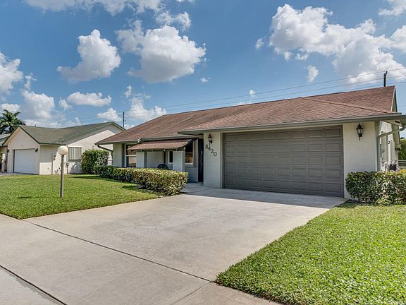 Home with 2 Master Bedrooms suites. Impact Windows & French Doors, Accordion Shutters & Hurricane Approved Garage Door. Stainless Steel Maytag kitchen appliances, vaulted ceiling & split floor plan. Custom dining room mirror, air conditioner replaced October 2013, Roof replaced 2002. Garage includes attic with stairs, cabinets & work bench. Community with low HOA fee includes basic cable, community pool & clubhouse. Excellent schools, close to shopping centers, restaurants & parks.