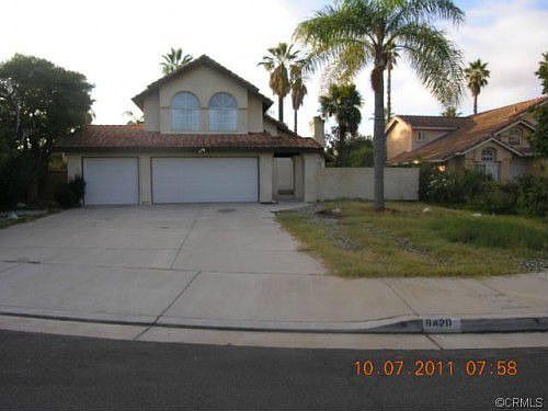 Beautiful 3 bdrms, 2.5 baths, pool home conveniently located in the heart of Riverside. Close to schools, shoppings, freeways, and amenities. This cul-de-sac home offers all 3 bedrooms upstairs with laminate flooring, separate dining, living, and family room downstairs with tile flooring. Dining area has patio door access directly to the backyard and a gorgeous pool. The two-level cathedral-vaulted ceiling home comes with tile roof and attached 3-car garage!