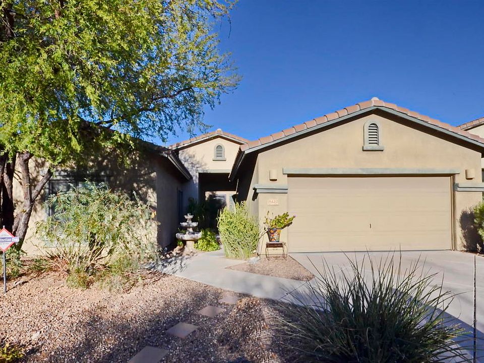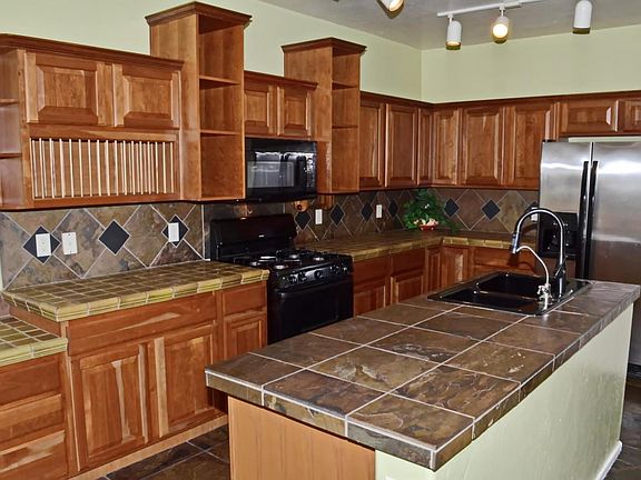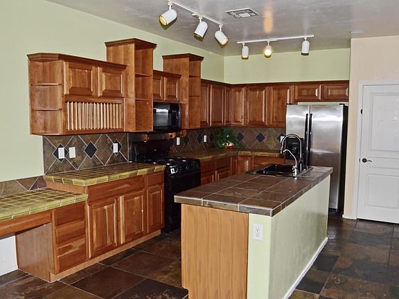 Warm and stylish previous model home awaits new family. A true gourmet kitchen w/extended and staggered kitchen cabinets with buffet work station counter desk area, island workspace and pony-wall breakfast bar. Very spacious kitchen dining nook with bay window + a bonus room that could be used as formal dining, den or office, playroom, TV room, etc. A stunning stacked stone fireplace/entertainment wall in great room wows you as you enter. Numerous art niches, upper & lower stations for TV (TV bracket already on wall). Expansive laundry room with abundant storage cabinets, counter spaces & laundry sink. Two full bathrooms, 4 bedrooms + a 3 car tandem garage w/storage shelves. Backyard boasts oasis style living with extended patio area, gorgeous landscape, built-in BBQ station. Lovely home.