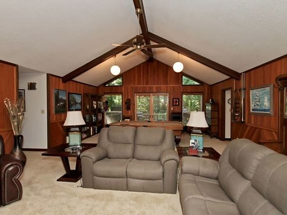 Move-in ready home w/ upgrades on 2 acre wooded lot in cul-de-sac. Renovated kitchen w/ granite, tile backsplash & stainless appliances. Great Rm thats ideal for entertaining w/ vaulted ceiling & wood-burning fireplace. Hardwoods in dining rm & NEW carpet throughout. Renovated baths w/ elegant finishes. Large BDRMs w/ Ceiling Fan, Master w/ WIC & private bath. Landscaped yard, Large Deck & Patio!