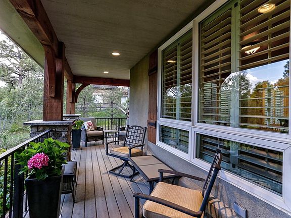Large .86 acre lot, orig owner, private cul-de-sac location! Red oak hardwd floors, Cherry wd finishes, plantation shutters thruout. Dining rm w/butler's pntry, showcase cbnts & wlk-in pantry w/motion sensor lighting. Gourmet ktchn w/42' Cherry cbnts, slab granite, large islnd/brkfst bar, Viking downdraft 6-burner range, dbl ovn. Morning rm accesses deck. Fam rm w/art & entertainment niches, gas frplc w/stone surround/cherry wd mantle. Main floor study w/Frnch dr & blt-in cabinetry. Mstr ste w/coffered ceiling, H&H custom wlk-in closets, gas frplc w/tile surround & cherry hardwd mantle. 5-pc mstr bth w/soaking jet tub, 3-sprayer shwr, granite H&H vanities. Main level lndry. 4 secondary bdrms w/ensuite bthrms. Bright grdn lvl bsmt w/temp controlled wine rm & full bar, dual zoned HVAC, 2 wtr htrs, blt-in spkrs, 8 ft solid core doors, cntrl vac system. Mature aspens, 100ft ponderosa pines, irrigated garden area. Blt-in speakers on wraparound front porch & back deck. Outdr gas valve.