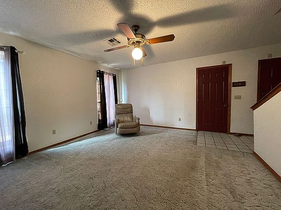 Partially furnished two story townhouse with attached two car garage (has insulated garage door). Cozy back yard has slab & is wired for hot tub installation. Has five ceiling fans. Storage shed in backyard. Rain guttering around most of the house. Homeowner's Association takes care of fencing, mowing & spraying front lawn & common area & exterior of house (other than the roof). Garage has L shaped workbench. Furniture included: 2 bedroom suites; TV stand; computer stand; china hutch; dining table; recliner. Appliances included: French door refrigerator with ice-maker; microwave with microwave stand (with storage); Magic Chef stove with oven; Magic Chef dishwasher; front load washer & dryer.