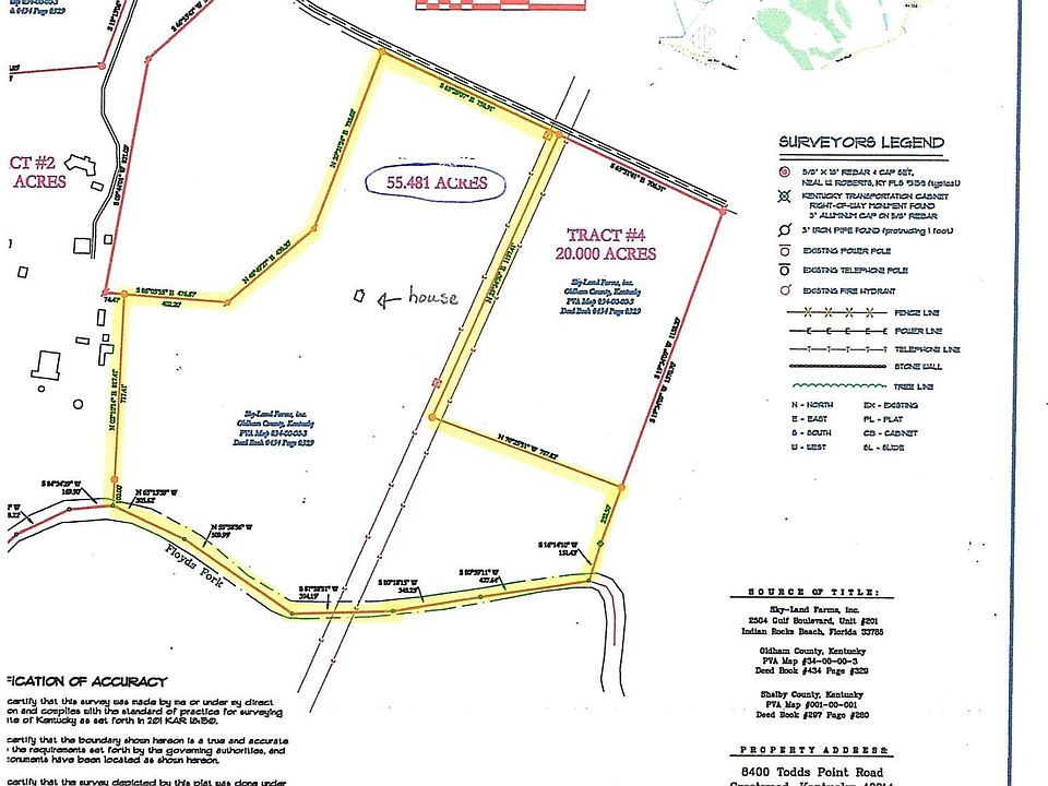 Great opportunity to own 55+ acres of cleared prime land in Oldham County. Great building sites for your new home. Wonderful location, close to Crestwood & Gene Snyder. The very well known popular Floyds Fork Creek borders this property. The house on the property built in 1948 is vacant and requires needs some renovation as it does not have city water hooked up and is sold as is-where is (2 bedrooms, bath, kitchen & living room ). ADDITIONAL LAND AVAILABLE.