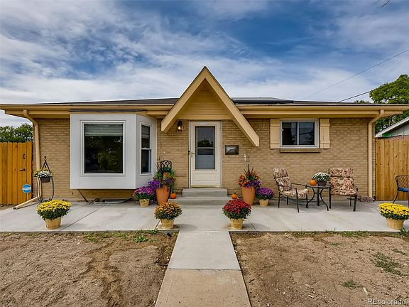 This lovely all brick ranch-style home, is perfect for the "first time" home buyer. The kitchen has been completely remodeled with new cabinets, flooring, backsplash, and a very "unique" dining island. This cozy home has two bedrooms on the main level and two bedrooms in the basement. One basement bedroom is being used as a walk-in closet but can be converted back to an actual bedroom as there is a closet in this room. Windows in the basement are non-conforming. There is a large family room and large laundry/storage room combination also in the basement. Living room has beautiful bay window which brings in the beautiful Colorado sunlight. Updates to this home in 2019 and 2020 include High R vapor and radiant barrier insulation in the attic; all new windows through the house; solar roof panels which will save 50-80% on electricity costs; security system with cameras inside and out; cement driveway, large front and back patio and walkways, and 6' high cedar fence. Front and back yards are a blank slate - design your own incredible outdoor sanctuary. Middle and High schools are only 1.5 miles away and elementary school is one block away. Easy access to I-25 and RTD park-n-ride. Shopping, restaurants and recreation are in close proximity.