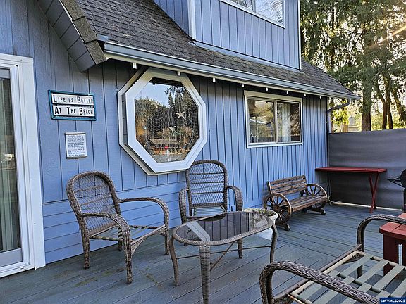 Private .85 acre Siuslaw River front property with views, play, boating, fishing & camping. More than a vacation home, this breathtakking, unique residence has plenty of room for family & friends. Why not own your own home &/or vacation property with a registered dock & not have to travel far away to enjoy the privacy, water & wildlife. The .85 acre is landscaped with a shop. Roof new in 2015. Activities are not restricted to waterfront. The property is close to forests, county roads & hiking trails.