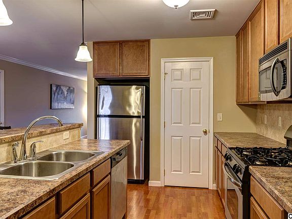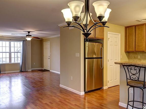 Why build when you can move right in! Open floor concept, 1st floor laundry. Great size kitchen w/ breakfast bar, laminate flooring, stainless appliances. Nice size dining area; leads out to a patio for entertaining. 2 Full baths, large living room w/ crown and laminate flooring. Ideal for starting out or downsizing. Minimal maintenance, ALL APPLIANCES STAY; only 3 years old, end unit, and close to all east shore amenities!