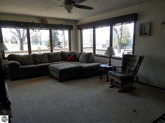 Awesome view of Bear Lake plus 20 feet of deeded access lake frontage (with 70 foot dock) plus a wonderful 4-5 bedroom, 2 full bath home! Add the fact that it has 3.48 acres of lawn and woods and a 28'x30' garage and this property has it all! Open floor plan, fireplace insert in living room, French doors, beautiful entry with brick wall and newer front door. Master bedroom and second bedroom plus office all on main floor. Kitchen has many cabinets and newer appliances. Dining room opens to living room and large front deck. Walk-out level has family room with 5 yr old pellet stove, newer Pergo Premium flooring and new picture window in 2016. 2 additional bedrooms, a full bath, laundry room and large mud room complete this level. Newer water heater. Storage shed and underground sprinkling!