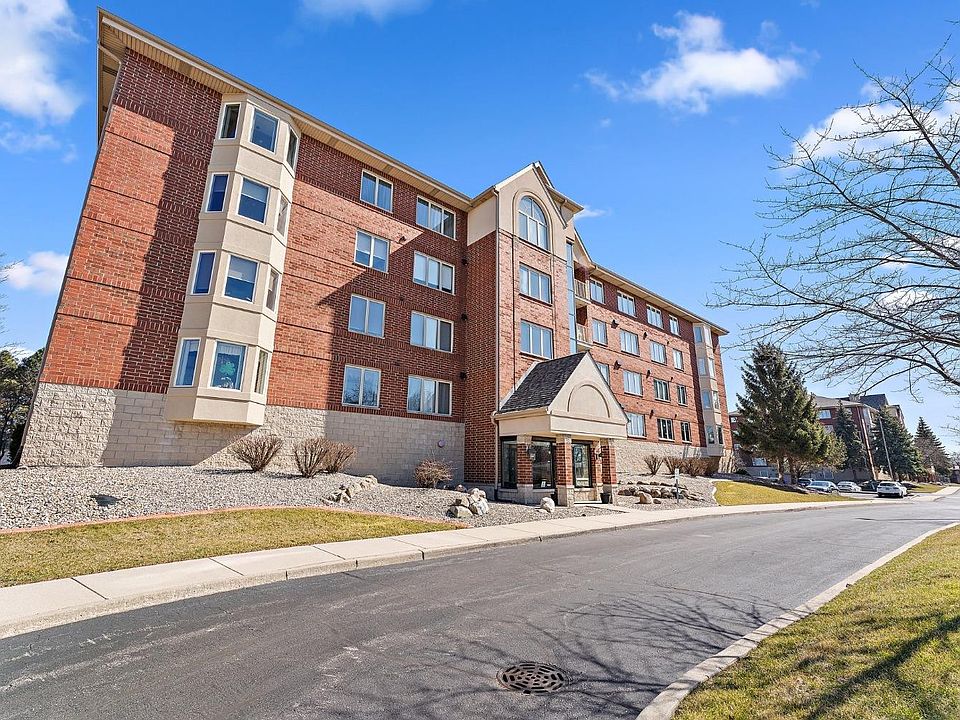 Rare opportunity to own a Renaissance Condo! This 1st Floor SPACIOUS condo features 2 LARGE BEDROOMS, 2 baths, separate DINING AREA and a DEN! The kitchen is BRIGHT and airy with SS APPLIANCES, GRANITE COUNTERTOPS and a cozy bump out nook. Off the kitchen is an area that can be used as a DEN or dining room PLUS there is a dining area off the Living Room allowing for many OPTIONS to utilize the space! The Main bedroom has DOUBLE CLOSETS and an attached bath with WALK IN SHOWER. Don't miss the nice-sized LAUNDRY ROOM (Washer & Dryer stay) and the South-facing BALCONY to relax and enjoy. No noise here with the QUIET FlexiCore construction. This Building also has an ELEVATOR and a ground level HEATED PARKING garage (assigned space plus storage unit) that make this one hard to beat! Convenient location near Shopping, Restaurants, Expressways and Hospitals. The HOA covers Water, Scavenger, Snow removal, Lawn care, Building maintenance and Common insurance. NEW ROOF in 2022!