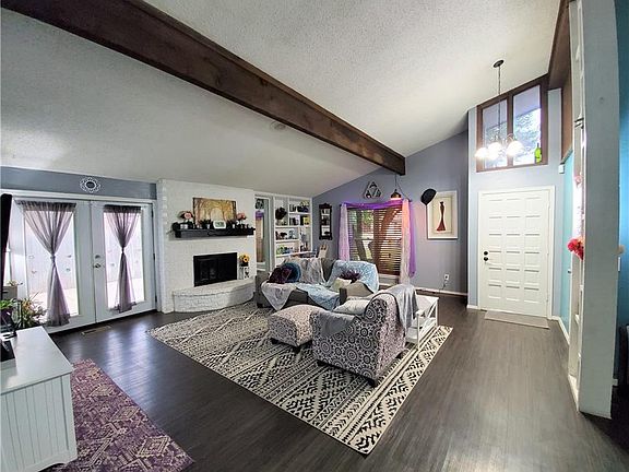 No cookie cutter - Fun colors and styles. Tall ceilings and windows. Large living area with fireplace. Kitchen with updated counters, flooring, backsplash and more. Tons of built-in storage. Spacious secondary bedrooms with walk-in closets. Large hall bath with good counter space and elbow room. Huge master bedroom - Updated master bathroom. Side patio with hot tub and room for lots of patio furniture and grill. This one is a must see. The refrigerator, hot tub and tv in master stay. Curtains and lamps are reserved.