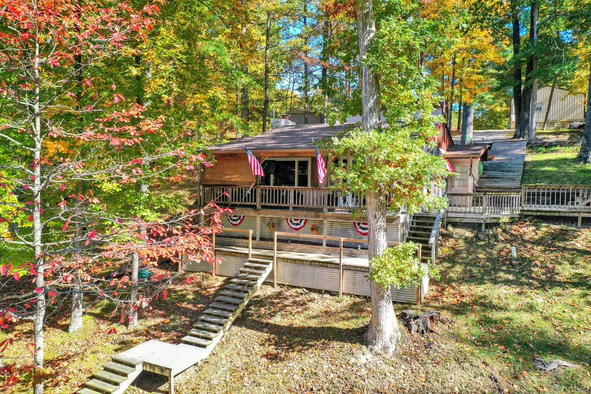 Water sparklesBeautifully wooded lotSpacious deckPrivate dockOutdoor hot tubHome officeSpacious bonus room