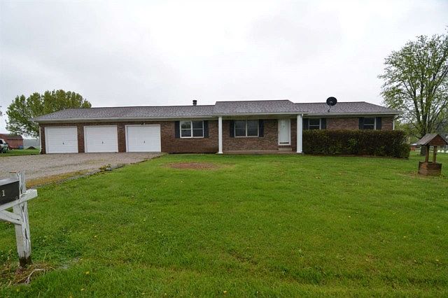Stunning newly remodeled ranch home in Posey County. 3 Bedroom 2 Bath Brick Ranch with 3 car garage on over an Acre. House includes remodeled kitchen with granite countertops, new floors, stainless steel appliances. Hardwood floor and new tile throughout the 2 finished living rooms and over-sized laundry room with folding table. Traditional fireplace in sunken living room with tile wall and marble hearth. Three bedrooms have roomy closets and 2 full baths have been recently remodeled from the ground up. 16 x 14 sun room overlooks the large back yard with fire pit. Garage has a generator disconnect.