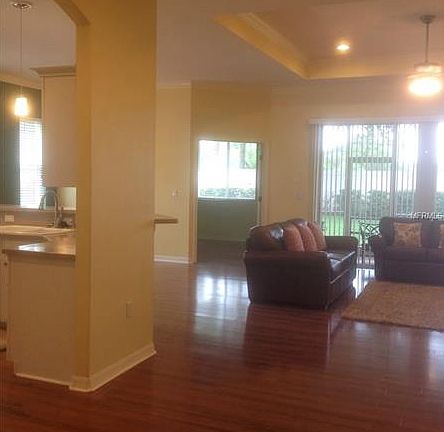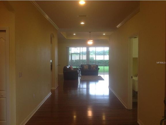Absolutely beautiful well maintained move-in ready 3 bedrooms, 2 bath home with the perfect open floor plan, great for entertainment. This Exceptional home welcomes you with a grand foyer leading to the open living room and dining room area, all with nicely accented crown molding throughout. Kitchen has all newer upgraded stainless steel appliances. The study/den facing the backyard is truly a nice bonus. Master bedroom has new carpeting with 2 walk-in closets. Laundry room includes upgraded washer & dryer. On the outside, become instantly impressed with a special designed driveway, beautiful new exterior paint and a fabulous front outside screened enclosure for added beauty and security. The back covered sitting area is screened for outside sitting convenience. Whitney Meadows is a fabulous community that offers a community pool with NO CDD fees, is pet friendly and near a variety of quality shopping, restaurants and freeway for easy access to Bradenton/Sarasota, Siesta Key Beach and St. Petersburg/Tampa area.