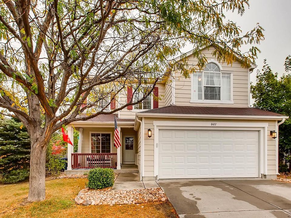 Welcome home to this two-story gem with finished basement. This 4 bedroom / 4 bathroom home has hardwood floors throughout the main level, open spaces with nice vaulted ceilings. The kitchen features 5 burner gas stove, a built-in microwave, undermount sink, cherry cabinets and stainless steel appliances.The loft offers a nice open area between bedrooms and oversees the family room with gas fireplace. The master bedroom features a custom closet organizer and the master bathroom features a drop-in bathtub. Step outside to your own oasis in the private, fenced in backyard featuring a pebble patio, garden boxes and a hammock to call your own. Your oasis is conveniently located without neighbors directly facing your front door, and one of two parks within walking distance. Your nest sits near Arapahoe Crossings shopping mall, a brand new King Soopers Marketplace, E-470, and 30 minutes from DIA. Lastly, no HOA!