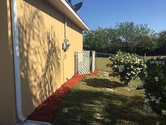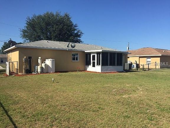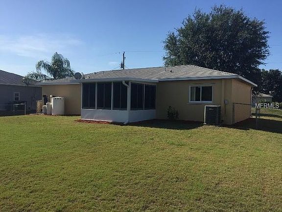 Wow, this would make a great starter home or rental property. Has a fenced backyard for your animals and a nice lanai for that morning cup of coffee. All tile floors throughout and this comes with the kitchen appliances and with a washer and dryer. Buyer to verify all room and garage sizes.