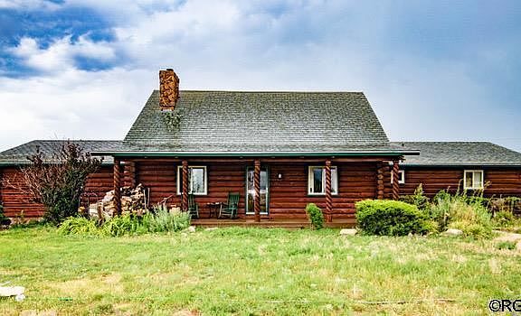BEAUTIFUL CUSTOM LOG HOME ON 61 ACRES WITH HUGE VIEWS OF THE WET MOUNTAINS AND PIKES PEAK! Split floor plan features Open Great Room concept and Vaulted Ceilings with Stunning Log Beams. New Kitchen with Clean, White Cabinetry and Massive Island Range. Large Master Bedroom with 5pc En-Suite Bath, plus two more Large Bedrooms on the other side of the house, each with their own Full Bath. Take the stairs up to the Rec Room Loft with it's own Half Bath, Wet Bar, and Separate Office! Top of the Line Lamorite Roof that is resistant to hail and weather damage. Logs and decks have been freshly sanded and stained. Tons of space in the outbuildings with a Quonset Hut/Workshop with cement floor and Detached 2 car Garage/Shop. Property is Fenced and Cross-Fenced... couple that with a Great Well, and this property is perfect for horses and cattle! Not to mention CLOSE TO TOWN! Don't miss this one of a kind home! Seller will repair/refinish hardwood floors prior to buyer possession.