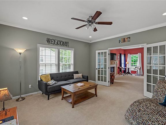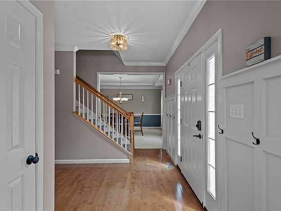 Spacious brick front Colonial situated on a quiet cul-de-sac street in the popular Parkes Farm Estates. Open foyer w/HW flrs & upgraded wainscotting first greet guests. Formal LR ft. crown moulding & French doors lead into an expansive FR with gas FP. Gourmet EI Kitchen boasts large island, SS appliances, tile backsplash, double wall oven, pantry+ morning rm w/vaulted ceiling. Pwd rm, FF laundry & large DR w/tray ceiling & crown molding rounds out the main lvl. Easily relax in the sprawling UL primary suite where you'll find neutral tones, vaulted ceiling, WI closet w/custom closet system & ensuite bath w/soaking tub, shower & double bowl vanity. New flooring throughout UL+hall bath & 3 large secondary bedrms, one of which includes built-in shelving, desk & window seat! Fnshd bsmt with 1/2 bath provides even more living space! Enjoy outdoor entertaining on the deck, in the usable yard or relaxing around the firepit! Easy access to SF school campus, highways, shops, dining & more!