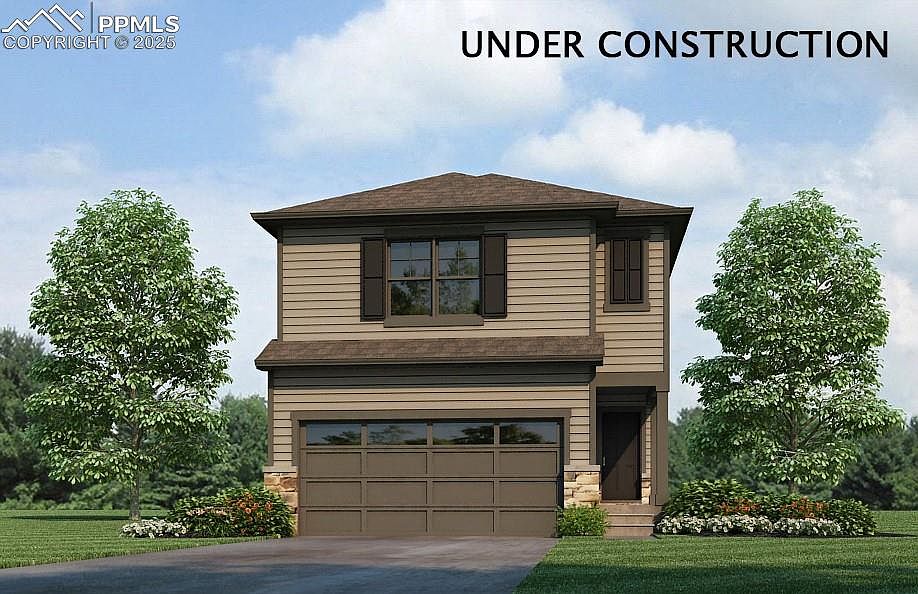 This 2 story, 1,956 sq ft home features a blend of classic and modern architectural elements, with a welcoming front porch leading to an impressive 8 foot door at the entry. The centerpiece of the home is the oversized great room area, perfect for everyday living for the household and/or entertaining guests, flows seamlessly into a large and modern kitchen complete with an island and features stainless steel appliances, granite countertops, and a full backsplash. The upper level offers 3 good sized secondary bedrooms with generous closet space and a bathroom with double vanities with plenty of counterspace. Experience the luxurious primary bedroom which offers plenty of space, a large bath area featuring a large relaxing shower, double vanities with quartz countertops. This home comes with AC, tankless water heater, smart home package, front yard xeroscaping, rear yard fencing, and more. Come see this home located on a corner lot in Fountain/Fort Carson school district 8. It is perfect for those looking for space, style, and a prime location!