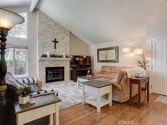 This single level Huntington Beach home feels like a model home! Located in the highly desired Springhurst community, this end unit has a great interior location. From the moment you walk in the home you will experience the incredible warmth and luxury feeling of the vaulted ceilings, natural light, open floorplan and high end upgrades. This home has been meticulously remodeled including the stacked stone fireplace, wood-like laminate floors, double pane windows and sliders and recessed lighting. The kitchen is spacious with beautiful cabinets and counter tops, a large pantry and stainless steel appliances that opens up to the dining room. The primary suite is very inviting from the high ceilings, walk-in closet with organizers, dual sink vanity with a quartz counter top, stone shower and privacy shutters on the slider that opens up to one of the two private patios. All the bedrooms have ceiling fans and the secondary bedrooms are good sized as well. The hall bath has been upgraded and has a shower/tub combination. The large private patio in the backyard provides a tranquil setting for relaxing, entertaining, dining and enjoying gardening or other hobbies. There is gorgeous brickwork on the back patio along with a tasteful patio cover and plenty of plants for privacy. Other incredible features in this home include a secondary patio off the primary bedroom, air conditioning, and a 2 car garage with ample storage. The laundry was originally in the kitchen and that can be converted back to that area. Springhurst is a well maintained community that has fabulous amenities such as a pool and spa, RV & boat parking, lush greenery and green belts. There is also a park nearby with great views and city light views. The location is superb as it is just minutes to Downtown Huntington Beach, Pacific City and Bella Terra and there is easy freeway access to the 405 and 22 freeways.