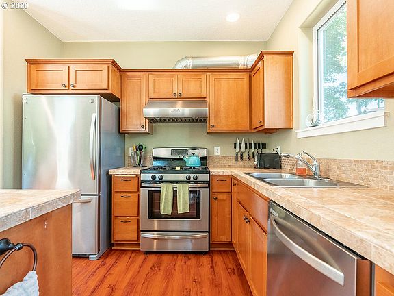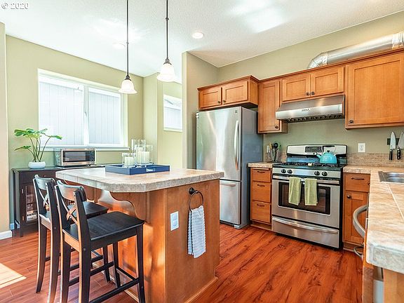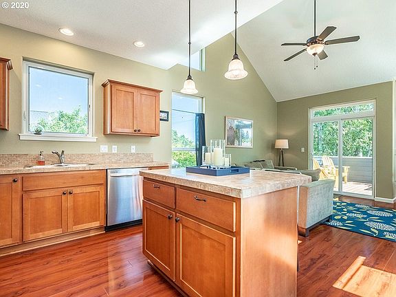 Bring your clients! Must see ,well cared for 3 bedroom, 2 bathroom home built in 2009. Great room with vaulted ceiling, wood flooring, opens onto 2nd floor deck. Kitchen with shaker style cabinets, stone counter tops, island and back splash. Main floor bedroom opens onto rear patio, fenced yard. 8 foot ceilings, easy walk to parks and Max. Newly painted exterior and forced air. [Home Energy Score = 10. HES Report at https://rpt.greenbuildingregistry.com/hes/OR10186331]