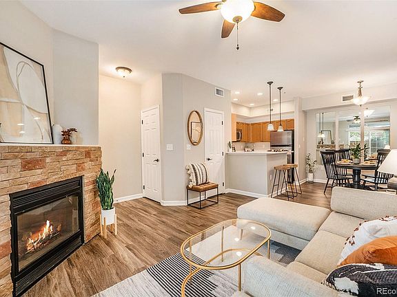Rare opportunity to own a beautifully remodeled one bedroom unit at The Cay at Marina Pointe. Gorgeous updated ground floor unit with an open floorplan, extra storage and private outdoor space. This home includes brand new quartz kitchen countertops and sink as well as stainless steel appliances and eat-in counter space. A spacious living room with cozy gas fireplace opens to a private covered outdoor patio with glass door and storage closet. The large updated bathroom includes a custom tile shower and updated fixtures. The en suite laundry closet comes complete with a washer and dryer. Ample parking for guests. Great location near C-470 and Chatfield Park and a short walk literally across the street from the unit to the pool and dog park. Clubhouse, pool, tennis courts, basketball courts, dog park, grounds and building maintenance, water and snow removal are all included with the HOA.