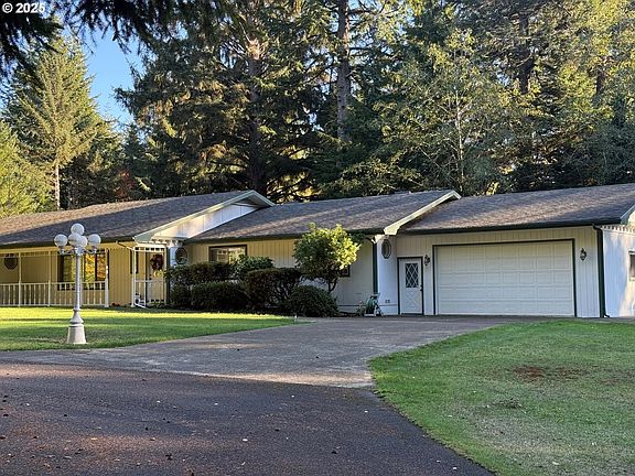 Experience forested tranquility and coastal adventure on this private retreat just minutes from town on 3.5+ wooded acres. Central to 27 freshwater lakes, the Siuslaw River, Pacific Ocean and the amazing Oregon Dunes, this exceptional property offers solitude, versatility, and a true Oregon lifestyle. The custom ranch style home is filled with natural light from abundant windows and skylights, creating a calm, nature-inspired atmosphere where you can enjoy watching deer, birds, and other local wildlife. Inside, the spacious floor plan offers flexibility for multi-generational living. The primary suite, located off the living room, boasts an oversize closet and ensuite bath; down an opposite hallway are two additional bedrooms and a main bath offering privacy for guests or family. A laundry room with additional space for an office or sewing area sits across the hallway. The gourmet kitchen will delight any cook with its ample storage, dual ovens, induction cooktop, microwave, and both formal and casual dining areas. A sliding glass door opens into an expansive enclosed solarium and out to the covered patio. A gazebo—prewired for a hot tub or outdoor kitchen—beautifully blend indoor and outdoor living for year-round enjoyment. A fenced garden with raised beds and a hobby orchard featuring mature apple, pear, and plum trees plus blueberries and raspberries make farm-to-table living easy. Bonus features include: A finished two-bay shop with RV parking, bathroom, and workout and/or entertainment room equipped with its own pool table, card table & wet bar with built in bookshelves, a gun cabinet and comfy woodstove; a perfect space for hobbies, guests, or potential conversion to living space. An open two-bay pole barn and a separate mower/ equipment building complete this property making it more than just a home—it’s a lifestyle filled with family gatherings, cozy evenings, and endless opportunities for relaxation and recreation. Listing agent is related to the Seller.