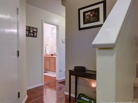 Beautiful, move in ready town home located in South Anchorage. Open concept upstairs with cathedral ceilings, direct vent fireplace, spacious kitchen with SS appliances, breakfast bar, tons of counter space and storage. Rich laminate flooringThree spacious bedrooms, 2 up 1 down. Family room and 2 full baths. Fenced back yard with deck.This home is beautifully decorated & in immaculate condition.