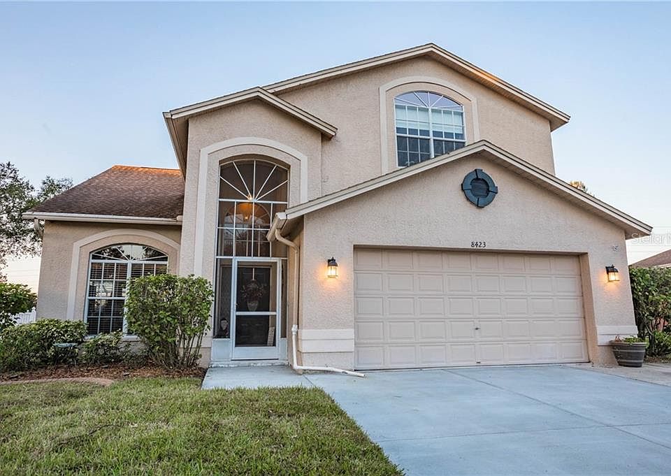 Beautifully updated home with 4 bedrooms, 2.5 baths plus a swimming pool located on a cul-de-sac in Trinity Oaks. Through the front entry, a soaring 2 story foyer greets you with brand new luxury vinyl plank floors throughout the first level. The formal living room and dining room are flooded with natural light and a neutral pallet. An arched walkway leads you into the kitchen with an abundance of storage in the white cabinetry and closet pantry. A new stove with matching SS appliances and glass tile backsplash surround the eat-in breakfast nook with views of the pool. The family room with backyard access, powder bath and laundry room complete the first floor. The Master bedroom is light and airy with the vaulted ceilings and walk-in closet, while the en suite features a dual vanity, a large soaker tub and upgraded glass enclosed walk-in shower with floor to ceiling tile. The remaining 3 bedrooms include the same brand-new carpet, new window treatments, ceiling fans and generous closets. The guest bathroom has been updated with newer vanity, shower and tile plank flooring. The covered lanai has a newly painted pool deck that showcases your oversized swimming pool - perfect to cool off in. The custom safety gate and screened enclosure are there for your peace of mind. Enjoy entertaining with friends and family in your fully fenced yard with plenty of green space to build a garden. An outdoor grilling area with space for table and chairs and the in-ground firepit with fairy lights will make the perfect background for a summer BBQ and smores. Located within minutes of shopping centers, restaurants, microbreweries, community festivals and markets and the newly extended 42-mile Suncoast Trail. Come enjoy the Trinity lifestyle with all the amenities, wonderful neighbors and fabulous school zones close by.