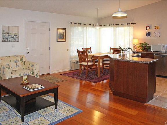 Stunning Penthouse Unit Shows Complete Pride of Ownership. Tucked Away From the Street, With Your Own Private Staircase, Surrounded by Trees, all Add to the Tranquility of the Location. Remodeled Kitchen with Center Island, Granite Counters, Stainless Appliance (Newer Whirlpool Dishwasher and Refrigerator are Included), Tile Floors and Gorgeous Cabinetry. Great Room Style Floor Plan is Open To Spacious Eating Area and Living Room with Ceiling Fan. Gorgeous Cherry Wood Flooring Throughout. Remodeled Bathroom with Marble Floors, Custom Vanity with Marble Counter, Over-sized Shower with Marble Walls, Custom Inlay, Sitting bench and Glass Enclosure. Two bedrooms with Ceiling Fans and one With A Walk-in Closet with Shelving. All Ceilings have been Scraped and Ducting Replaced with Asbestos-Free material. Inside Laundry with Full-Size Washer and Dryer (Included). All Windows are Dual Pane with Custom Coverings. ThermaTru Door Installed this year, which Opens to a Large Deck/Patio, Perfect for Entertaining, BBQs or just Relaxing. Covered Parking with Large Storage just steps away, and a Second space Assigned. Association has Recently Painted the Exterior of the Complex. Complex Boasts a Pool and Clubhouse. Close to Beach, Parks, Shopping & Schools.