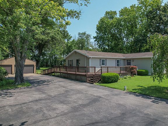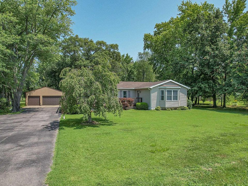 Enjoy peaceful and quiet living in this great 3 bedroom, 2 bathroom home in Mount Vernon, IN on 1.3 acres! You're greeted by a large wrap-around porch, the perfect place to relax in the evenings and take in the serene views. Step inside to a spacious living room with vaulted ceilings, a beautiful bay window, and updated engineered hardwood flooring. The same flooring flows through to the dining and kitchen area, which offers space for a large dining table and breakfast bar seating. The kitchen features updated stainless steel appliances and an updated sink/fixture. There are three bedrooms on the main level, each offering nice sized closets. Both full bathrooms have been updated as well. Downstairs, the partially finished basement offers a great versatile space, with a large room that would be great as a second living room or play room. Additional storage space and laundry hook ups are also available. You will love the outdoor space, which includes a large 3 car pole barn, and 2 utility sheds. There is also an existing deck, ready for an above ground pool to be added.