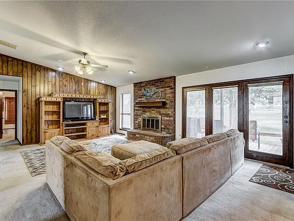 Well maintained, charming vintage ranch style home that sits on 1.45 acres. Enjoy quiet country living but also be close to shopping, restaurants and schools. Backyard is fenced and features a lovely pool with a slide. Backyard also includes a storage shed for mower and garden tools. Home is roomy with 4 spacious bedrooms, one being a flex room that could be used as a game room or second living space. The living room includes a fireplace, bookshelves, bar with a sink, and has a beautiful view of the backyard and pool. The Master bedroom is large and features his/her closets, whirlpool tub, shower and doors that open out to the covered patio. Enjoy the day sitting on the large covered patio that overlooks the large established trees in the backyard. The oversized garage has ample space for storage and features a storm shelter. The utility room includes a sink and storage cabinets. A new roof was installed this year!