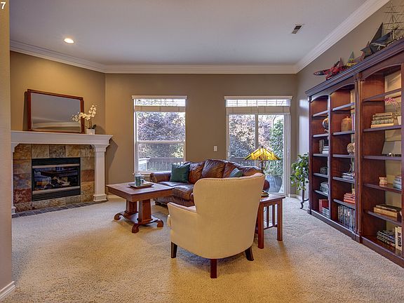 Luxury townhouse in Garden Home features architectural details and three master suites in a private, rare community. Multiple decks look onto greenspace and mature trees. Stunning high ceilings and an open floor plan, with a kitchen that will delight any entertainer. Lower level suite ideal for multi-generational living. Well-maintained, set back from the main road, with fantastic access to 217, I-5 and downtown. Buyer to verify all.