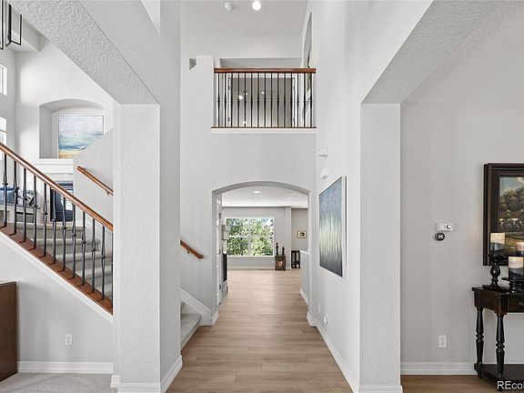 Welcome to this elegant 5-bedroom, 5-bathroom home offering over 5,100 finished square feet of living space in the highly sought-after Castle Pines North community*Designed for both everyday comfort and entertaining, this home blends timeless character with modern updates throughout*Step inside to discover brand new LVP flooring on the main level, a bright and spacious living room, formal dining room, and a private main-floor office*The heart of the home is the gourmet kitchen, featuring a new GE Profile double oven, a striking brick alcove with 6-burner gas stovetop and pot filler, a large island with hot water dispenser, generous eat-in area, dedicated desk space, a butler’s pantry, and abundant storage*Retreat upstairs via the private staircase to the primary suite, a true sanctuary with a spa-inspired bathroom boasting heated floors, dual vanities, chandelier lighting, and a Closet Factory walk-in closet system*Three additional bedrooms each with their own baths (one is a Jack & Jill), a convenient upper-level laundry room with dual access to the primary closet, and a versatile flex space complete the upstairs*