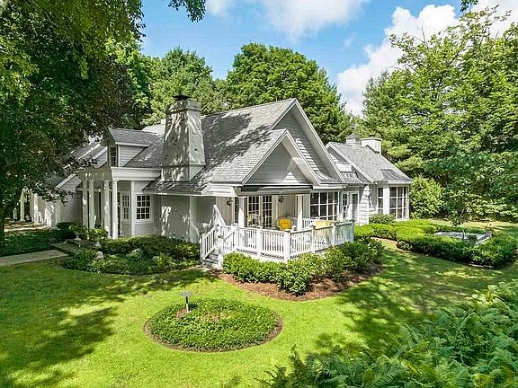 Lovely cottage on a beautifully landscaped lot between Roaring Brook and Meadowgate. Great floorplan with three fireplaces, beautifully paneled walls, large bay windows, main floor master bedroom, large basement, heated two-car garage, hot tub and nice decks. Enjoy this very private setting only a short bike ride from town and the lake. Peek views of the bay.