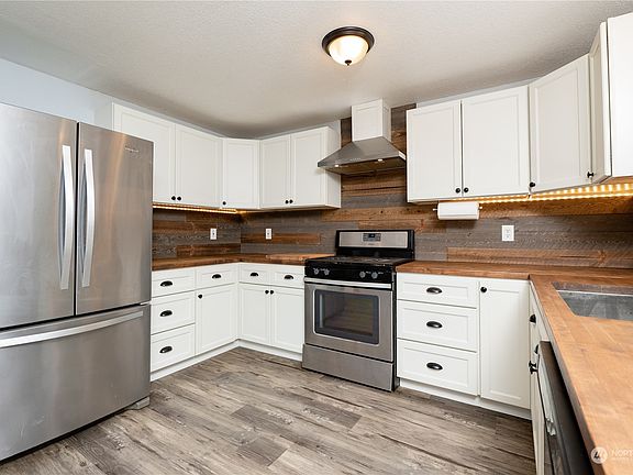 Harborview Estates NO STEPS rambler fresh off a fantastic remodel: the kitchen features on-trend white cabinets, warm butcher block counters, low maintenance LVP flooring, stainless steel appliances, bonus breakfast bar + a delightful brick accent wall. The primary suite features a top to bottom remodeled ensuite bathroom with new tile shower, flooring, vanity & toilet. Other updates include interior paint, doors, trim, ceiling fans, front deck & free standing wood stove. The private backyard is the ideal space to relax or entertain with a brand new composite deck, fence, chicken coop and fire pit! This Birch Bay gem is nestled between Vancouver and Seattle and just minutes from the beach, walking path & dining...don't miss this one!