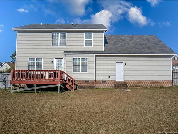 -Spacious two story home features inviting Foyer, Formal Living Room, Formal Dining Room, Large Eat In Kitchen and Great Room with Fireplace. Laminate floors, 1/2 bath, 2 Car Garage. Upstairs there are 5 bedrooms (Bonus Room is 5th Bedroom), 2 full baths. The Master Bedroom has a Walk in Closet,and Master Bath has soaking tub, separate shower & trey ceilings. Linen Closet. Hall Bath features dual sinks and tile floors. Interior freshly painted, deck overlooks privacy fenced yard. All rooms are spacious! Conveniently located close to shopping, schools, restaurants, Ft Bragg and the new 295 road. Highest and Best offers due by 5pm on 1/27/22!