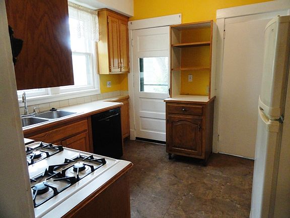Restored Victorian home in the heart of De Soto. 3 bedroom, 1 1/2 baths with soaring 9 ft ceilings, spacious rooms, hardwood floors, original woodwork and hardware. Kitchen features tall cabinets, dishwasher, gas range, microwave and refrigerator. Dining room has built-in hutch. Master bedroom has two walk-in closets. Basement laundry with washer and dryer and farmhouse sink. Covered front porch with swing, fenced treed yard with patio, detached one car garage with opener. Quiet neighborhood. Walk to the park or downtown De Soto. Award winning De Soto schools. All appliances stay. Central heat and A/C. Local friendly landlord. Available 3/1/21. One year lease. Tenant pays utilities. Small or medium dog considered with pet rent.
