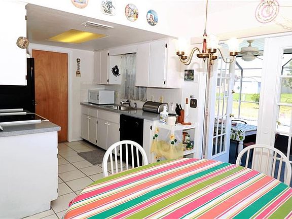 Updated and beautifully landscaped two bedroom, one and a half bath pool home located close to the library, shopping, grocery stores, restaurants and entertainment. Pool, pool enclosure and large covered and screened patio were added in 2005. A/C installed around 2006 that has had preventive servicing done annually since. A/C works very well and cools entire home in about 20 minutes. NEW ROOF - one year new! Enjoy the over sized corner lot with metered irrigation. Brand new pool pump and the water heater was replaced a couple years ago. Kitchen and baths have had some updates done over the last few years. Garage has a door opener. Come see this impeccably maintained home before it's gone! Room measurements are approximate. Buyer to verify.
