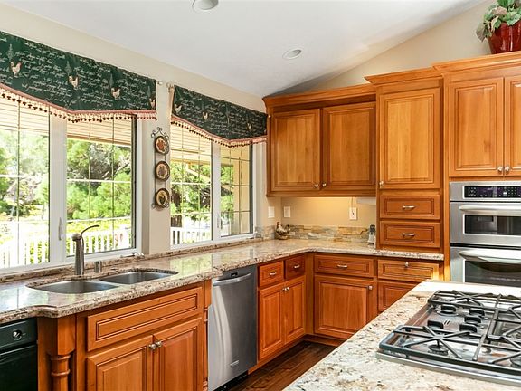 This one level classic Craftsman style home on .73 acres was designed to blend into nature. A signature feature of the Craftsman home is the wide front porch which welcomes visitors into this charming residence. Situated on a quiet street with no through traffic. Family ready with 5 bedrooms, cozy living room with views of the park-like backyard, large remodeled kitchen with custom cherry cabinets and vaulted ceiling, 600 sq. ft. family room with pellet stove, and pool for summer fun. Additional features include RV access, dual heating and air units, whole house fan, custom built 14 x 16 storage shed. Award winning Granite Bay schools.
