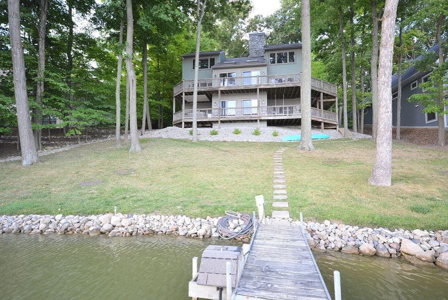 Expansive custom lake home at Loch Erin situated in a wonderful wooded setting for that up North feel. Soaring ceilings with skylights and tons of windows for terrific lake views. Open floor plan includes a large fireplace, lakeside dining area, patio sliders that spill to an expansive deck and spacious kitchen, all made for entertaining friends and family at the lake. Fully finished walk out lower level features large recreation family room area and extra patio space with lake side hot tub area. At the end of the day retire to your master suite and when it's time for all those guests to turn down, everyone will find their space with with a total of 5 bedrooms and 3 1/2 baths. Plus you'll love extra features like a large attached garage, circle drive and additional detached garage. This lake home has it all, call listing agent today for all of the information and your private tour.