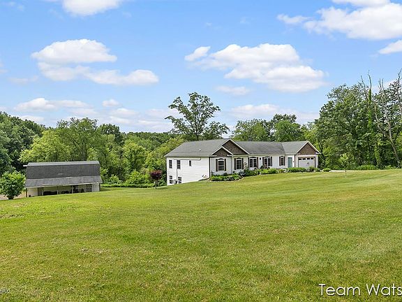 Beautiful spacious ranch located in Caledonia Schools. This 3.96 acre property sits on a private drive offering a huge polebarn with upper level storage. The wildlife here has brought so much enjoyment to seller. The home has a lot of great features including a large open kitchen with pantry and lots of cabinets, snack bar, eating area with sliders to a huge deck, mudroom/mainfloor laundry, formal dining room, large living room, master suite with walk-in closet and large bathroom, 2 more bedrooms and another bath and half bath. The walkout is partially finished, plumbed for an additional bathroom and wet sink.. The possibilities are endless and could add another 2000 sq. ft. Seller is requesting poss. to be 45 days after close.