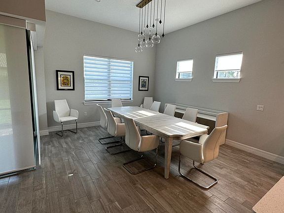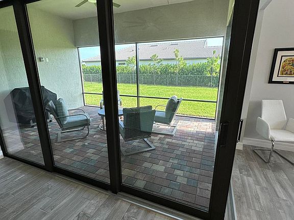 The one you've been waiting for! THE PINNACLE-Largest estate fully fenced corner private lot, with zero corner door and screened lanai. All wood look porcelain tile throughout home, no carpet, gourmet kitchen has gas appliances, under cab lighting, soft close kitchen cabinets and a wine cooler. Solid core interior doors, impact windows and doors. Hunter Douglas electric blinds in living area and plantation shutters in bedrooms for privacy. Fully furnished and decorated. Owner never lived here. Community Club House with resort style pool and cabanas, fitness center, tennis, pickleball. All age community. New state of the art High School within walking distance.