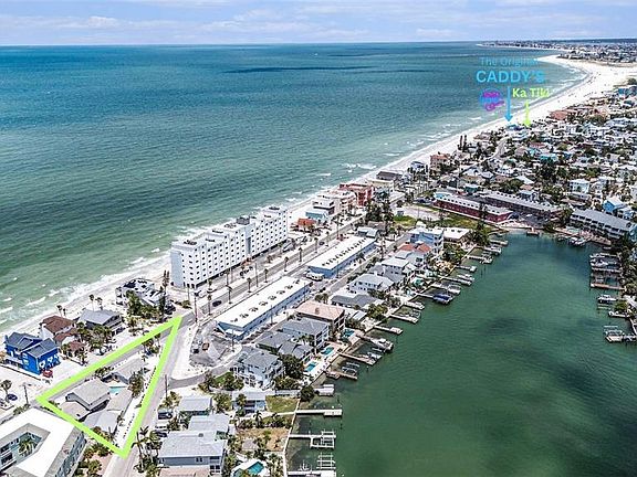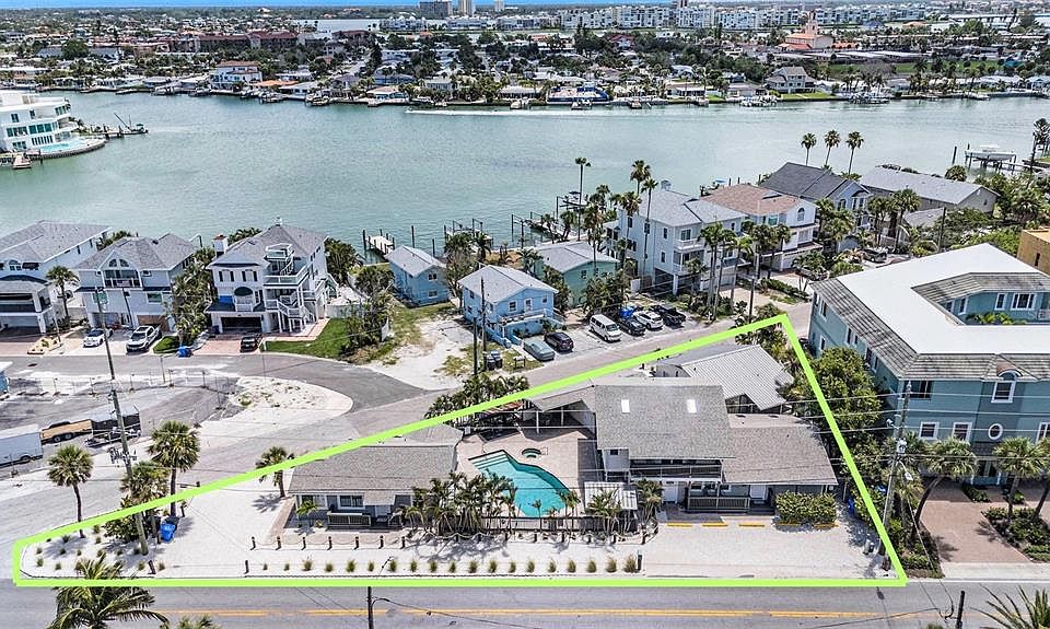 Welcome to The Point—an exceptionally rare, Long Island–themed beach compound just steps from the sand in Sunset Beach. Set on a unique triangular lot between the Beautiful GULF and the Intracoastal Waterway, this turnkey coastal retreat offers four private residences—three 2-bedroom, 1-bath units and one 1-bedroom, 1-bath cottage—each with open floor plans, full kitchens, private entrances, and stylish finishes including quartz countertops, shaker-style cabinetry, luxury waterproof vinyl flooring, brushed nickel fixtures, and impact-rated windows. The two-story unit boasts vaulted ceilings and a Gulf view. At the heart of the property is a private resort-style pool surrounded by shell landscaping and lush tropical greenery. Just a few blocks away, enjoy live music, wave runner and boat rentals, and the only place in Pinellas County. where you can legally sip a drink with your toes in the sand—Caddy’s on the Beach. Host unforgettable events at Caddy’s or the historic Elks Lodge, both rentable venues just around the corner. RS-15 zoning provides The Point's owners incredible flexibility to use the property as a family compound, hybrid investment, or long-term beach retreat. Check with the City for details. Includes 12 off-street parking spaces, a garage with onsite laundry, and no HOA. All this—just a 15-minute drive to vibrant Downtown St. Pete. Shown by private appointment only—this is Sunset Beach living like nowhere else.