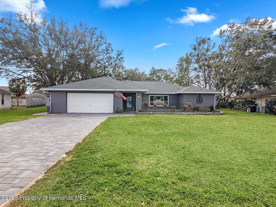 Welcome Home to this Stunning 3 bed|2 bath|2 car garage home. Situated on a .33 acre lot. This home has had many recent renovations completed. This functional split bedroom plan works great with 2 large family areas, vaulted ceilings, open kitchen/dining area w/ breakfast bar seating. Brand NEW Kitchen (2022) w/ Hickory Wood Cabinets, Granite Tops, SS Appliances. Other Upgrades-NEW Windows, Sliding Glass Doors & Front Storm Door (2022), NEW Exterior Paint (2022), NEW Paver driveway, Walkway, Front Porch, & Rear Patio Area (2022), NEW Spray Foam Insulation (2022), NEW Seamless Gutters w/ Leaf Guards (2022), NEW Belt Drive Garage Opener (2022), NEW Sprinkler System w/ Rain Sensor (2022), NEW Landscape Rocks (2022), Newer Water Heater (2015), Security System w/ cameras & doorbell. Call Today!