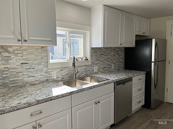 All new everything! Enjoy comfortable easy living in this light and open concept living with a separate entrance office. Master has beautifully tiled shower and floor, laminate flooring in public spaces, carpet in bedrooms. Large rented lot with mature trees, backed up to community area. Completely remodeled from the floors up. New windows, siding, roof, appliances, heat/air, floors, cabinets, insulation, walls, etc. New 8x10 shed. Very peaceful neighborhood with great views in SE Boise. Easy drive to airport, shopping, downtown and Lucky Peak Reservoir.
