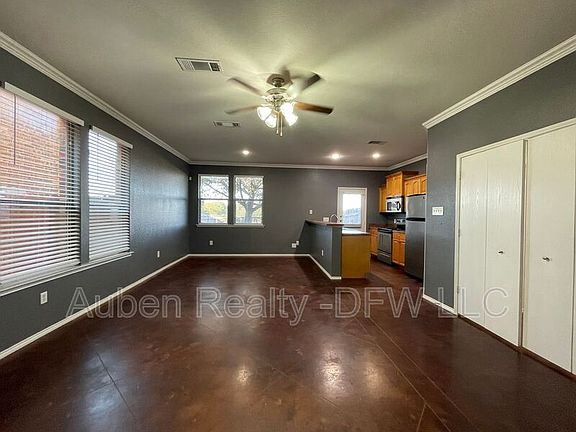 Well-Maintained two story Duplex for rent in White Settlement. 1394 Sq Ft. The property offers an open floor plan with a large living room. The kitchen features stainless steel appliances, a breakfast bar, and an adjacent dining area. Etched concrete flooring for easy maintenance in living, dining, kitchen, entry and half bath. All bedrooms and 2 full baths are located upstairs. Large master bedroom with walk-in closet and private bath. Additional bedrooms are spacious with good closet space. Private fenced back yard. 1 car attached garage. Separate utility room. Pets welcome! FRESH paint! NEW Carpet